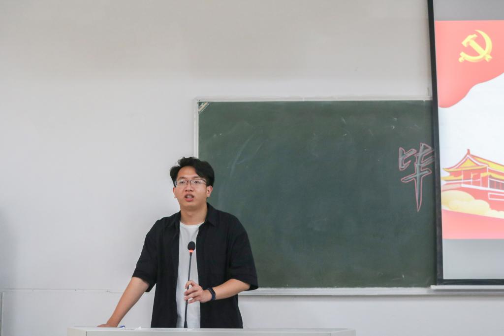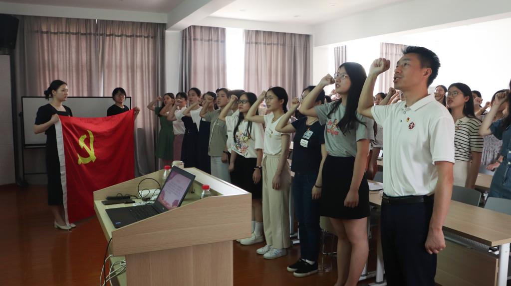 重温一次入党誓词,永葆入党初心。党课结束后,在李建军的带领下,毕业生党员们佩戴党员徽章,面向党旗,以饱满的激情、昂扬的斗志,郑重宣誓:“我自愿加入中国共产党,拥护党的纲领……”一字一句,字字铿锵。他们回望自己在大学时期写入党申请书的情形,再次感受到当时的热忱与初心,激励自己在今后不负使命,以实际行动为党旗和母校增添光彩。