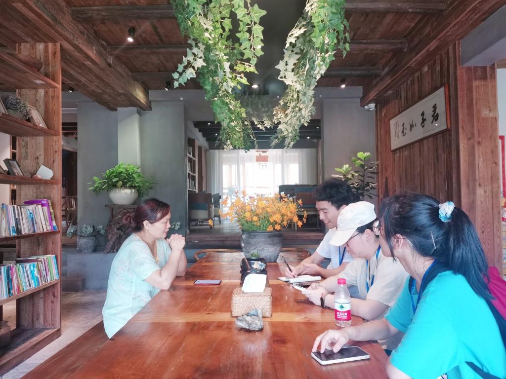 随后,实践组与台州市民宿协会筹备组副组长、和宿·山麦民宿经营者杨勇就民宿整体概念、民宿目标客群、公共区域规划与台州市民宿发展前景等内容展开了座谈。杨总指出,好的民宿需要同时具备选址、设计和运营三个要素,民宿发展到极致的表现就是实现民宿本身成为旅游目的地。民宿给客人的感觉应当是享受差异,差异感一方面来自于房间内部,更重要的是公共区域的设计,这也是民宿区别于酒店宾馆的特征之一。