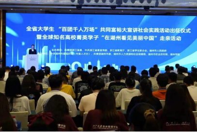 为贯彻落实“我在窗口写青春”浙江青年携手共同富裕先锋行动,团省委依托“双百双进”工作,启动开展了全省大学生“百团千人万场”共同富裕大宣讲社会实践活动,“浙东唐诗之路”实践队成功入选共同富裕省级重点团队,并参加了7月15日至16日在湖州学院举办的2021年度共同富裕实践队省级重点团队集中培训以及授旗出征仪式。