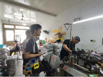 (图为实践队走访村内彩灯生产家庭作坊)