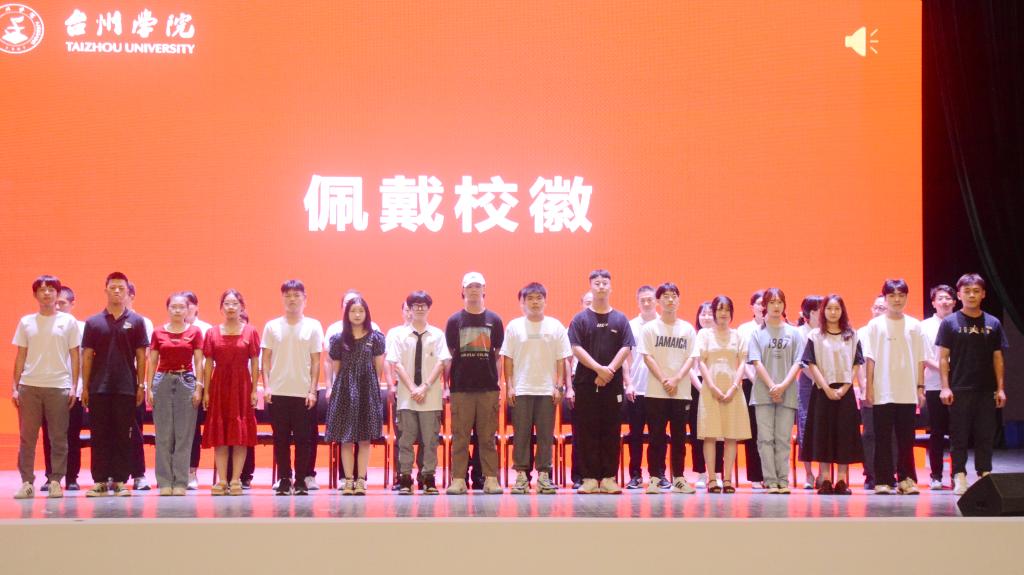 在庄严的国歌声中,开学典礼正式拉开序幕。伴随着昂扬的校歌,老师们为新生代表佩戴校徽,其他新生郑重地为自己佩戴上校徽,这标志着他们正式成为一名台院人。