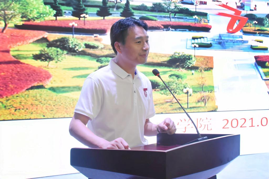 典礼最后,学院党委书记金宏伟为新生带来“开学第一课”,他结合校训和院训,就如何读大学给同学们提出建议,希望同学们在大学四年中学会认识自我、学会学习、提升能力、锤炼品格,殷切期望同学们笃定目标,做有理想的青年;勤学苦练,做有文化的青年;知行合一,做有道德的青年;敢于奉献,做有担当的青年,为中华民族伟大复兴而努力学习!