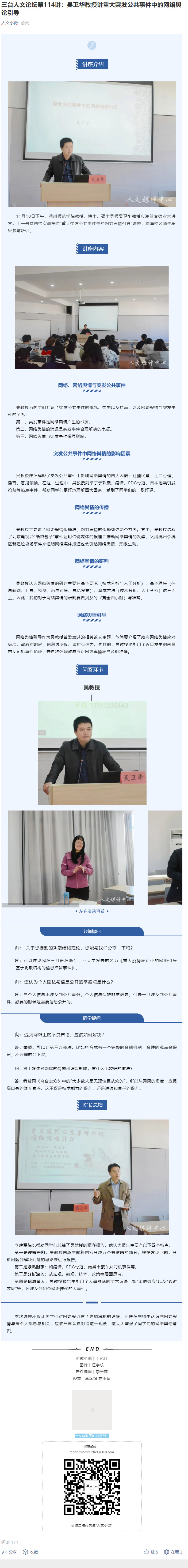 三台人文论坛第114讲:吴卫华教授讲重大突发公共事件中的网络舆论引导
