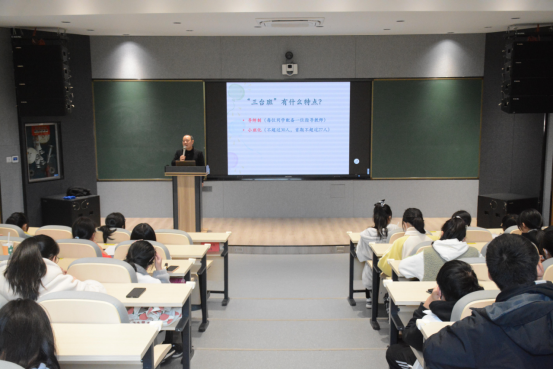 接下来,娄芸同学带领大家进一步地了解“三台班”。她认为,“三台班”的确是一个高手云集的平台,同学们在竞争与互助中取长补短、共同进步,具有极佳的学术氛围。通过娄同学对自身学习经历与各项活动实践的分享,大家对“三台班”有了更清晰地认识。