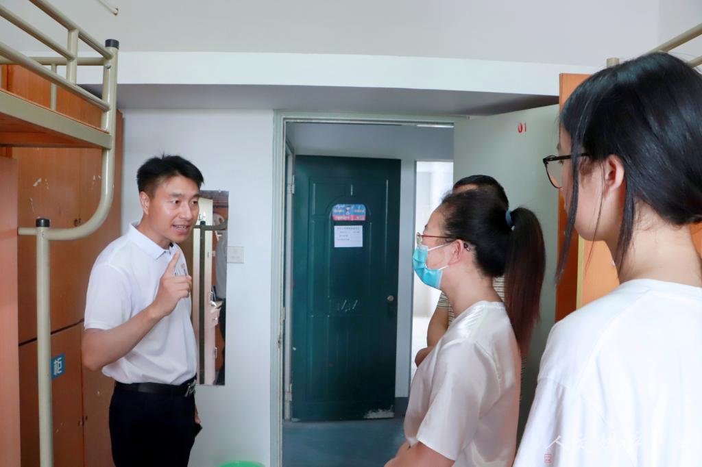 迎新期间,学院领导、班主任以及辅导员统一身着人文文化衫,坚守在迎新的一线。他们前往寝室走访慰问,关注新生们的需求与状态。师生间通过友好的洽谈拉近了距离,也让新生们感受到了人文的温暖与亲切。