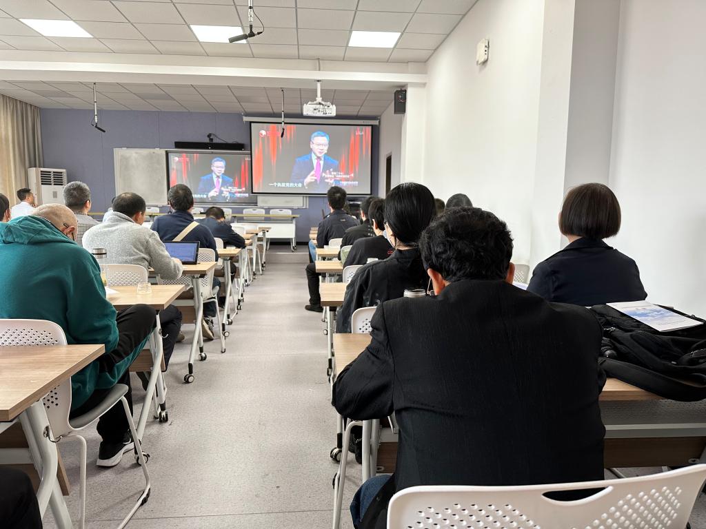 会上,全体教职工观看了《这就是中国》第164期节目。本期节目以“聚焦二十大 世界热议‘中国式现代化’”为主题,复旦大学中国研究院院长张维为教授和复旦大学中国研究院特邀研究员邱文平老师,解读二十大报告。