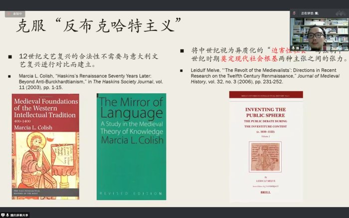 讲座最后,李老师指出,通过对12世纪文艺复兴学术发展史的梳理可知,目前学界已经克服了“反布克哈特主义”,亦即12世纪文艺复兴的合法性不需要与意大利文艺复兴进行对比而建立。同时,在将中世纪视为异质化的“迫害性社会”与强调中世纪时期奠定现代社会根基两种主张之间还存在着张力。