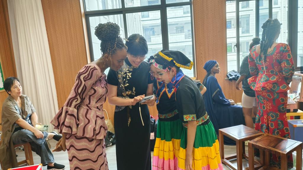 在活动现场,来自乌兹别克斯坦、尼日利亚、白俄罗斯、博茨瓦纳、加蓬等五国的台院留学生代表也与其他同学亲切交流,在本次活动中串联起了不同地区、不同民族、不同国家的友谊,墙上挂着的不同国旗也象征着中国与世界的环环相扣。