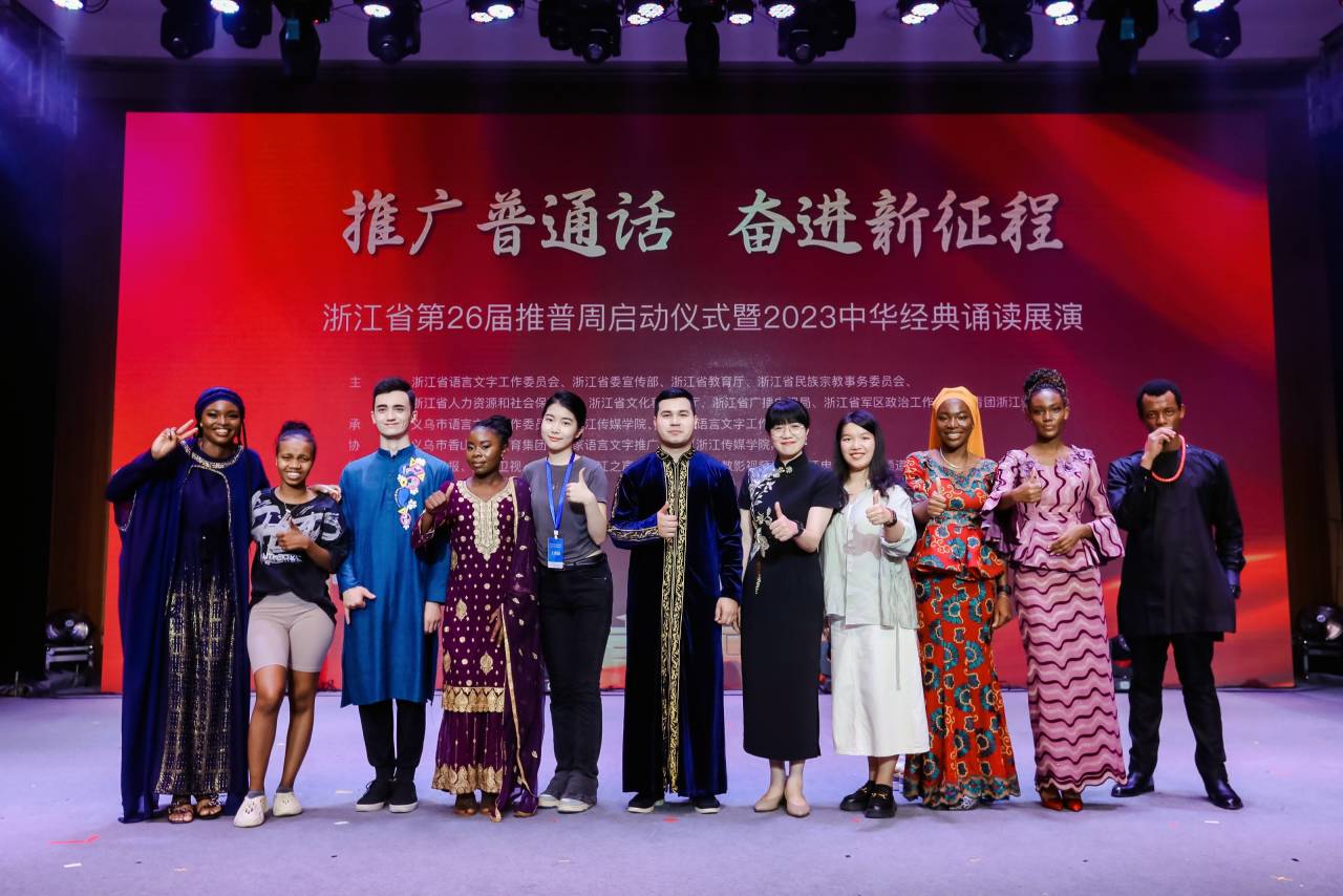 9月12日,浙江省第26届推普周启动仪式暨2023中华经典诵读展演活动在义乌市香山小学举行。我校留学生受邀参加,表演朗诵节目《理想》。