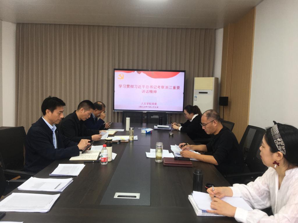 10月23日,人文学院党委理论学习中心组召开学习贯彻习近平总书记考察浙江重要讲话精神专题学习会,学院党委理论中心组成员参加会议,学院党委书记陈灵强主持会议。