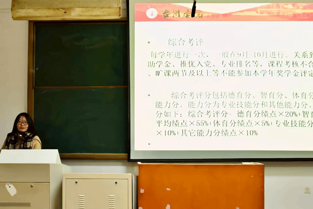随后,鹿宵宵为同学们讲解了三台班与卓越班的综合考评办法。她特别强调,综合考评关系到助学金、推优入党、专业排名等,课程考核不合格、旷课两节及以上等不能参加本学年奖学金评定。此外,她还为同学们介绍了综合考评的计分方法、每学年评奖对比、专业排名等。最后,她建议大家务必重视体测,平时加强锻炼,争取体侧达到良好标准。