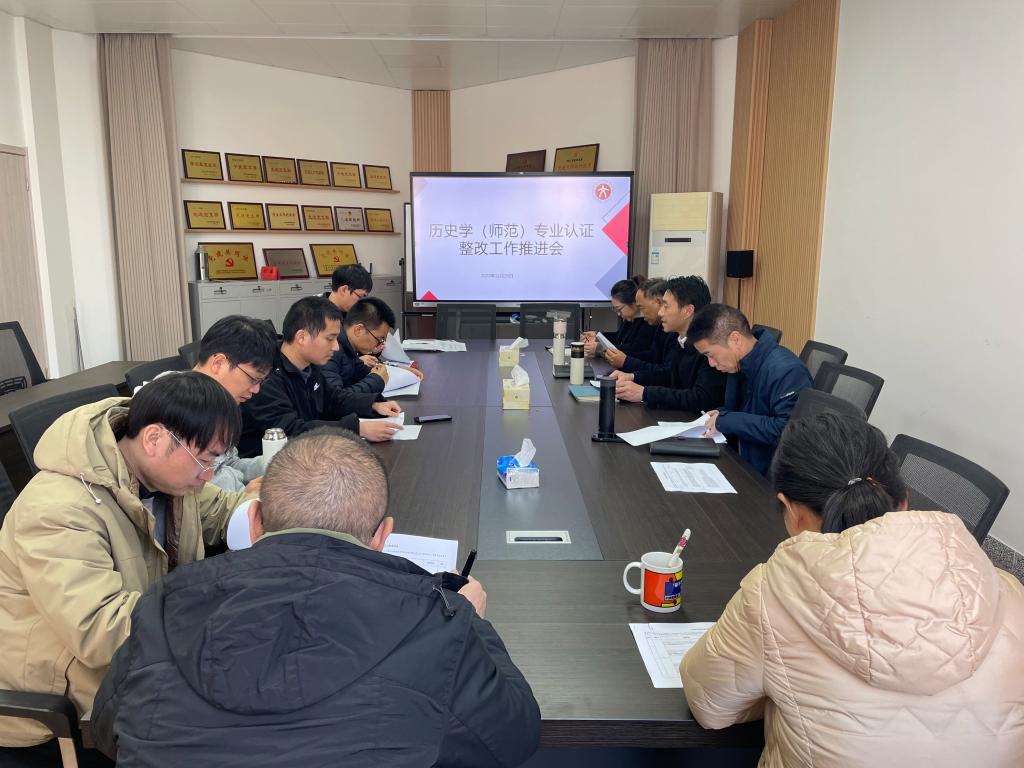 2023年12月29日下午,为继续推进历史学(师范)专业认证整改工作。亚洲成人久久组织领导班子成员、历史学团队全体教师、办公室、教务办、学工办等老师在党员之家召开了历史学(师范)专业认证整改工作推进会,会议由亚洲成人久久院长李建军主持。