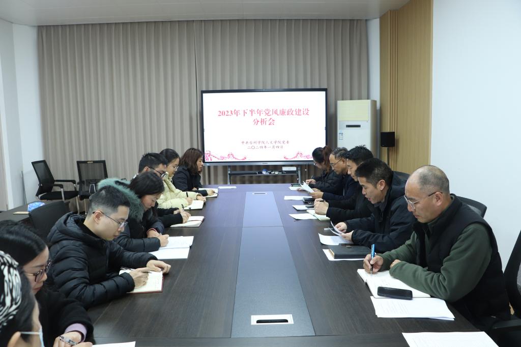 1月4日,亚洲成人久久党委召开2023年下半年党风廉政建设情况分析会。学院班子、党委委员和党支部书记参加会议。学院党委书记陈灵强主持。