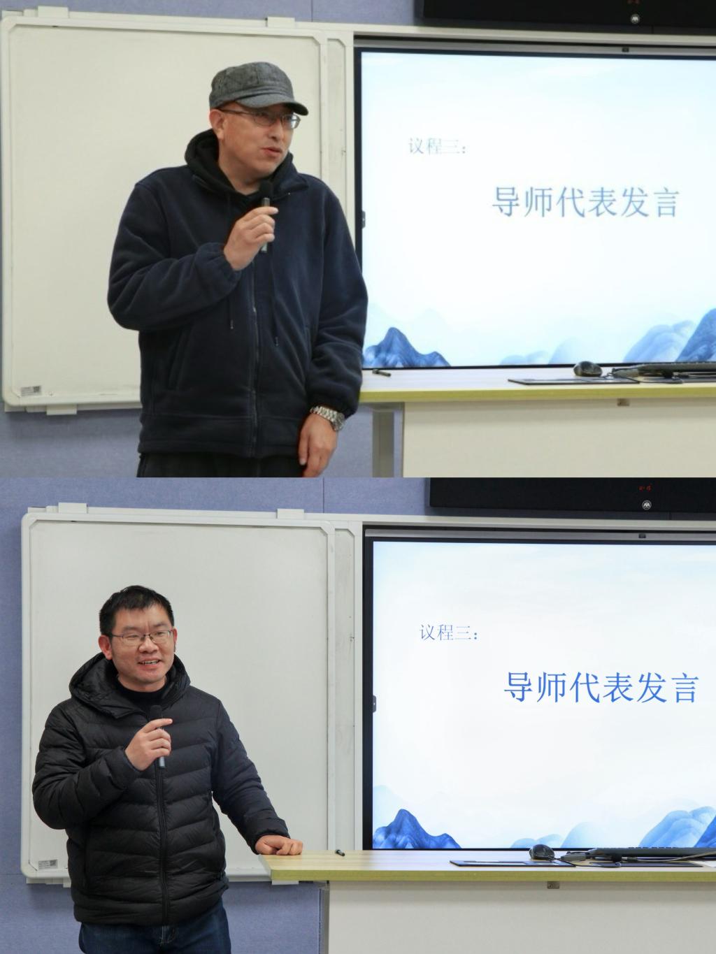 在导师代表发言环节中,康海荣指出三个关键词:感恩、珍惜与努力。他感谢学院给他这个机会,并表示师生都要珍惜每一次互相接触和交流的时光,鼓励同学们要努力抓住一切机会,快速成长。朱磊对同学们提出了三点希望:拥有独立的思想、较强的逻辑能力与守住底线,如此才能在社会快速转型的今天站稳脚跟,开辟自己的一片天地。