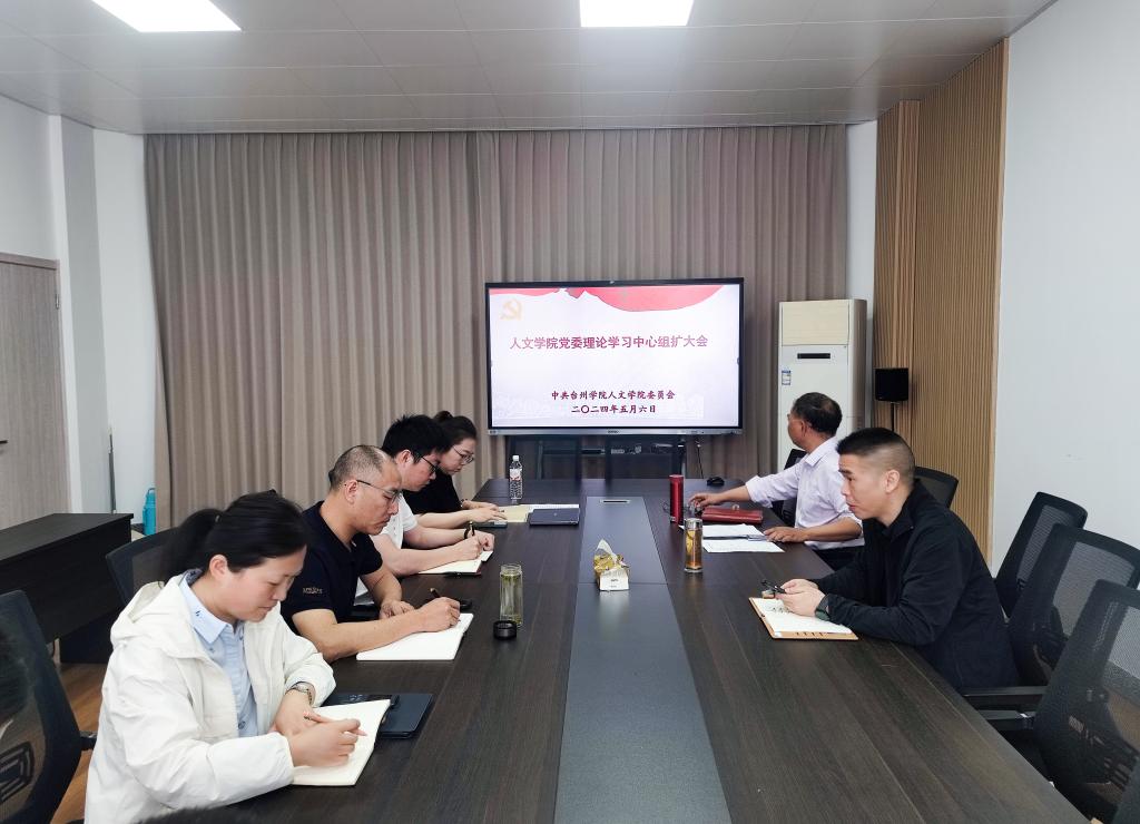 5月6日,人文学院举行党委理论学习中心组扩大学习会,围绕习近平文化思想、习近平总书记关于新质生产力的重要论述、《党史学习教育工作条例》《浙江省优化营商环境条例》等内容开展集中学习研讨。党委书记陈灵强主持,学院党委委员、学生党支部书记参加。