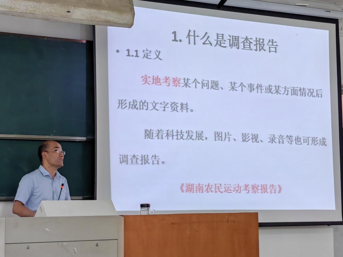 动员会后,孙建强老师作了《学业、就业与企业:以如何撰写调研报告为中心》辅导讲座。在讲座中,孙老师解释了调研报告的定义和用途,讲解了调研报告的格式;重点讲述了调研报告的要求,从“记叙文六大要素”、“科学严谨”、“可读性较强”三方面来分析撰写调研报告的特色,指出应实事求是,注重问题导向,除科研人员的学术调研,其他所有类型的调研报告都可以加入故事情节。最后,孙老师讲解了调研报告的实际案例,并对各组课题经行点评,提出指导意见。