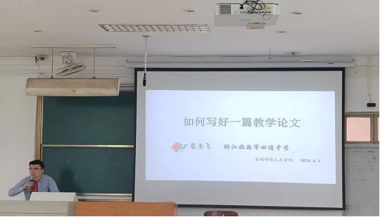 为提升大三学生的教学论文写作水平,进一步了解教学论文的生成过程,并对实习期间各学生的教研成果做一个更为专业的总结。6月4日下午,亚洲成人久久于A3教室召开《如何写好一篇教学论文》专题讲座,本次讲座由临海市回浦中学张永飞主讲,亚洲成人久久徐樵楚老师主持,21级汉语言文学(师范)全体同学参加。