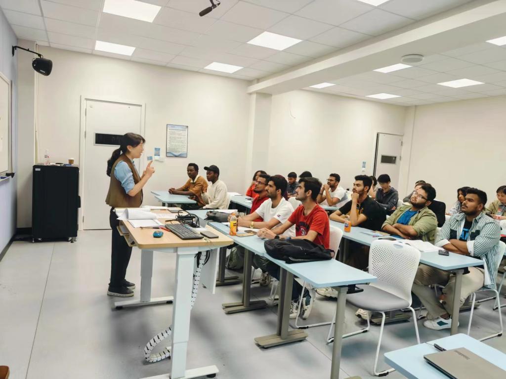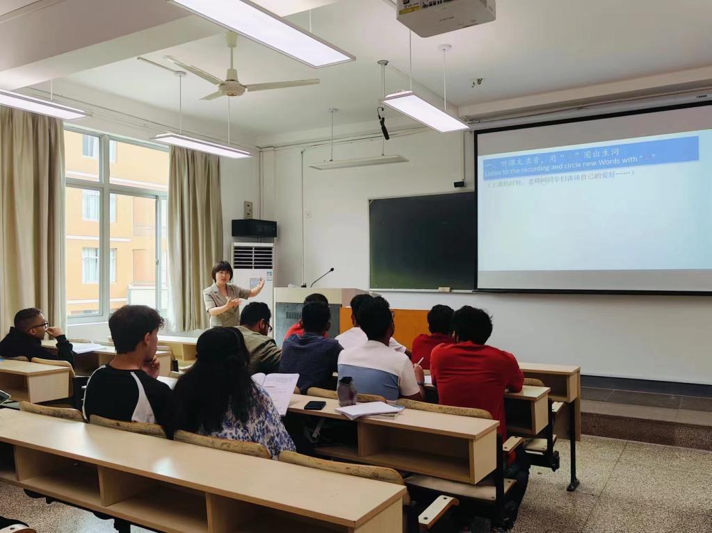 教研活动第一阶段开展的是公开课。口语组金妮娅老师授课内容是《汉语视听说》、综合组陈童老师讲授《初级汉语综合Ⅱ》课程。两位教师上课截然不同,但都细致地向留学生们分析了课文中的重难点生词和语法,帮助同学们读懂课文。