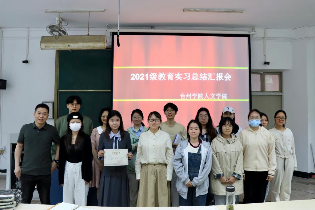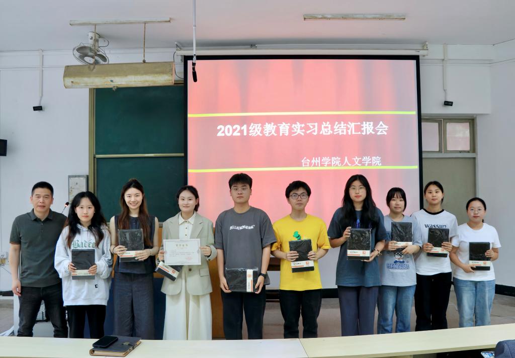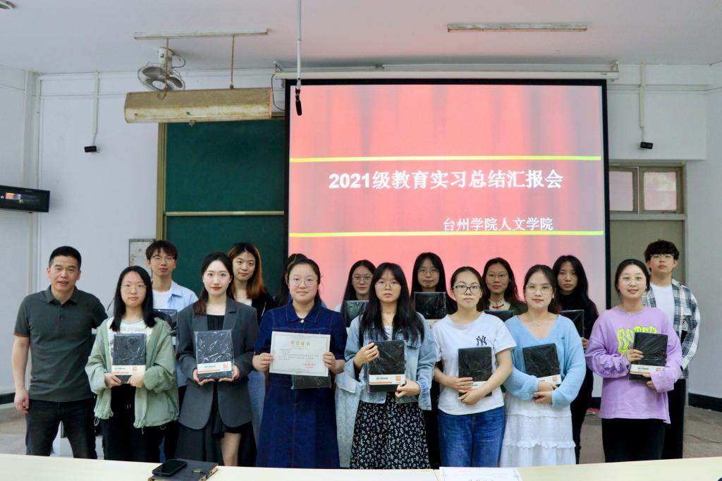最后为颁奖环节,陈灵强为临海市台州学院附属中学实习小组、路桥实验中学实习小组与台州市白云中学实习小组颁发教育实习优秀实习小组奖状。