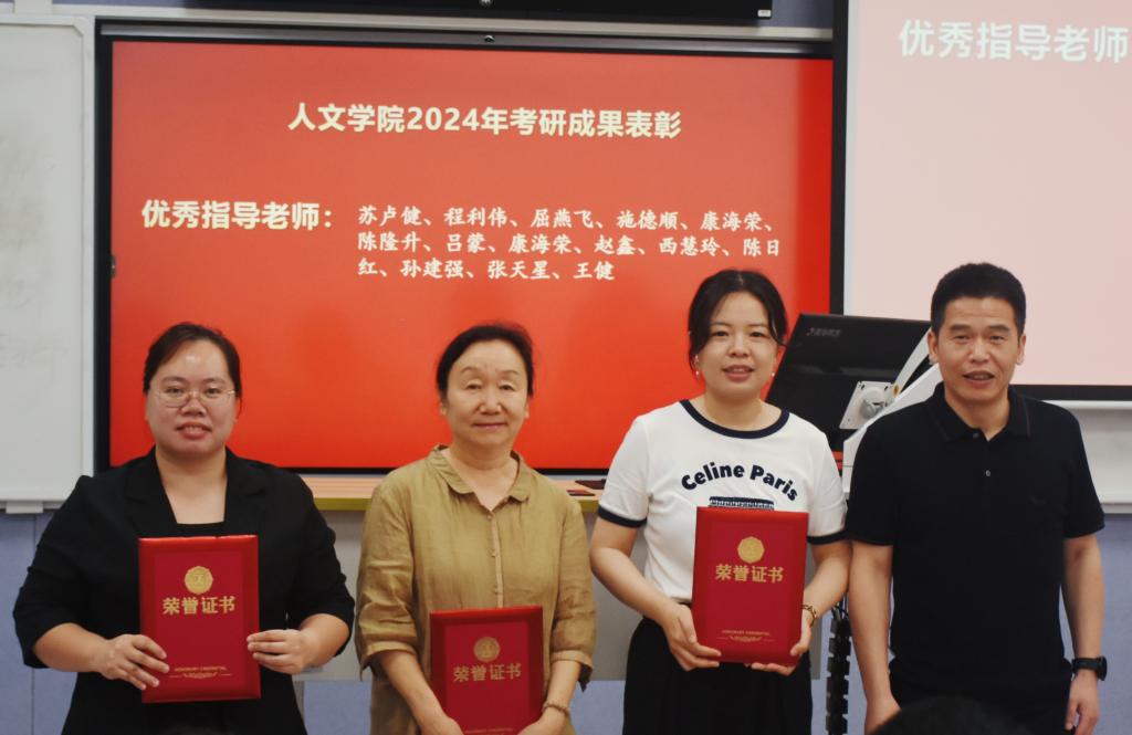会上,娄欣星宣读了学院2024年考研“优秀指导老师”“优秀考研学子”名单,陈灵强、林军辉为他们颁奖。
