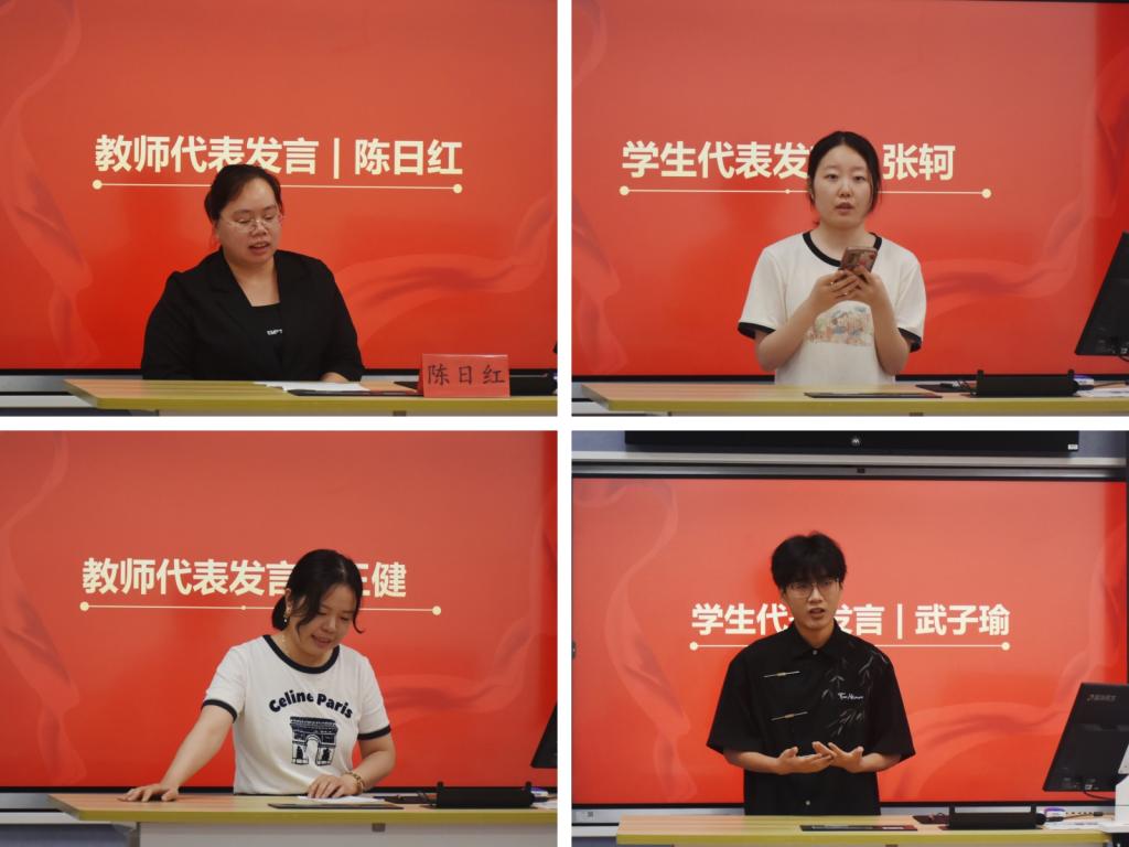 “优秀指导教师”代表陈日红发言表示,考研是一场难忘的人生经历,希望同学们耐住孤独,保持信心,努力奋斗。“优秀考研学子”代表张轲结合自身考研经历和真实感受,鼓励同学们保持自信的心态和稳定的情绪,直面困难与挫折。25届考研学生武子瑜表示,考研一途要不畏外界的言论,光明正大地努力,追寻心中的声音。25届考研指导老师代表王健给即将考研的同学提了几点建议:一是勇于试错,把握学习节奏,明确努力方向;二是寻求指导老师的帮助,获得正确的引导和正向情绪,提高备考效果;三是保持身心健康,以完满的状态和心态备战考研。