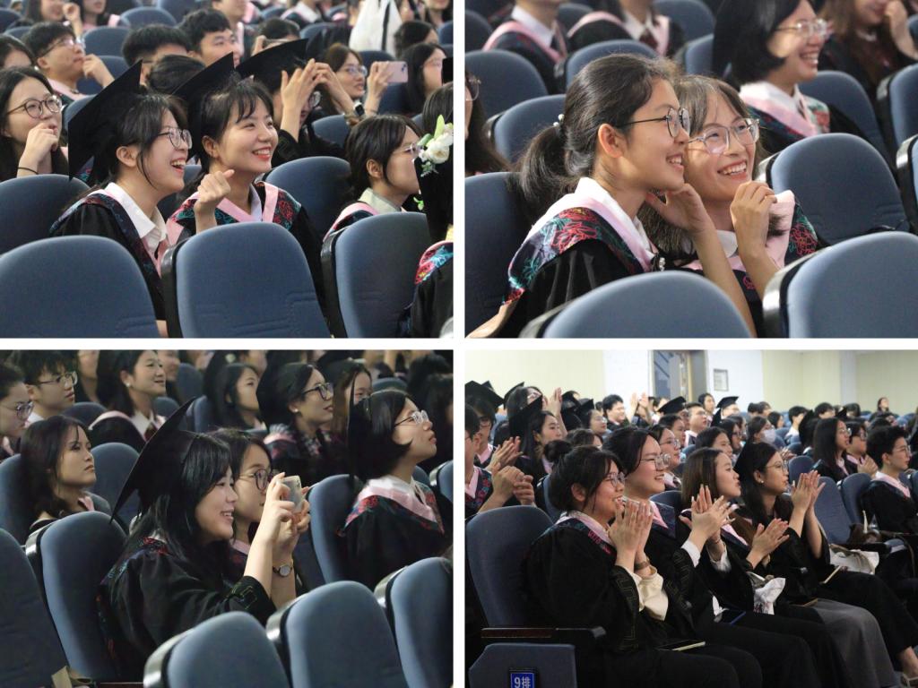 随后,全体师生共同观看《青春不散 逐梦山海》毕业视频。大学四年的点点滴滴如走马灯般在眼前闪过,记忆如暖风环绕,笑与泪并存。