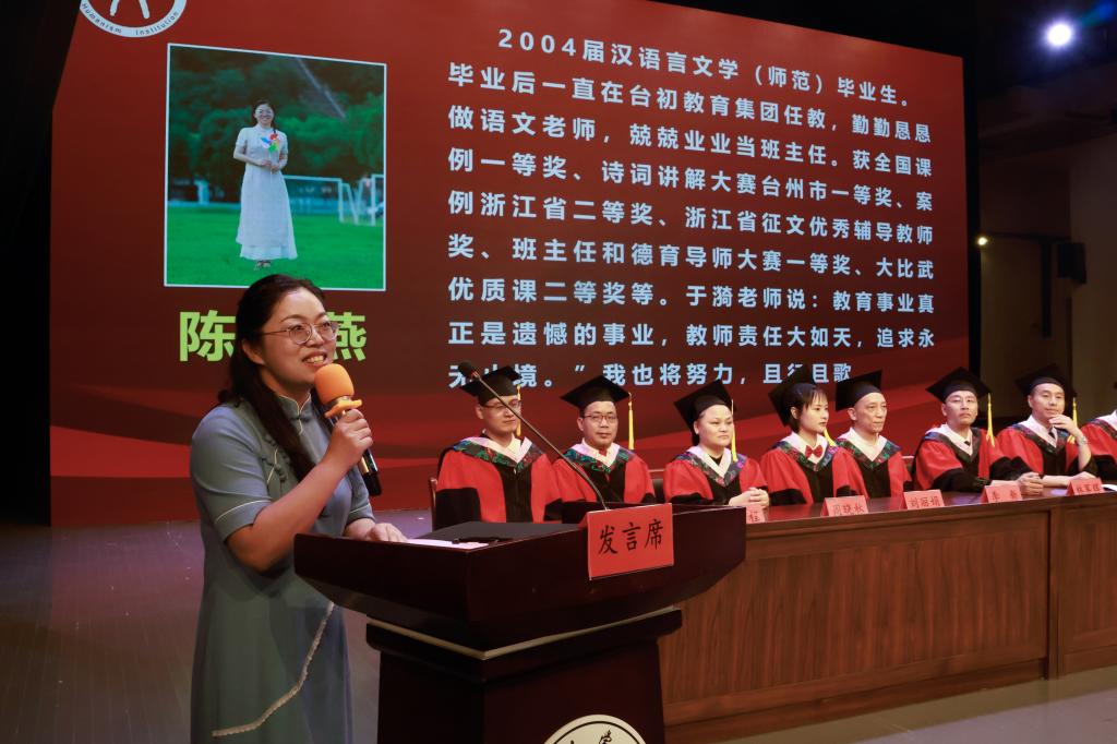 陈琳燕,2004届汉语言文学(师范)毕业生。毕业后一直在台初教育集团任教,勤勤恳恳做语文老师,兢兢业业当班主任。获全国课例一等奖、诗词讲解大赛台州市一等奖、案例浙江省二等奖、浙江省征文优秀辅导教师奖、班主任和德育导师大赛一等奖、大比武优质课二等奖等。于漪老师说:“教育事业真正是遗憾的事业,教师责任大如天,追求永无止境。”我也将努力,且行且歌。