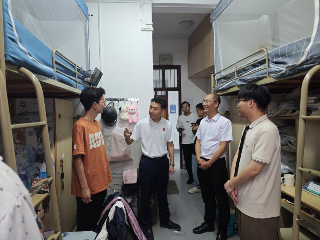 为进一步做好毕业生离校前的教育、管理和服务工作,确保毕业生安全、文明、愉快地离校,6月19日,党委委员、副校长李建军深入走访亚洲成人久久毕业生寝室,为即将踏上人生新征程的毕业学子送上温馨的祝福和美好的期望,亚洲成人久久党委副书记林军辉陪同走访。