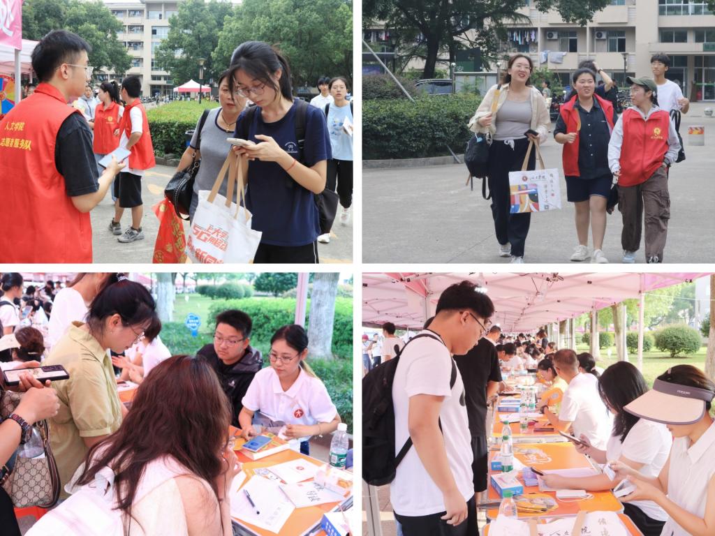 迎新当天,学院领导班子、新生班主任、辅导员等统一身着人文文化衫,坚守在迎新一线。他们一边查看新生报到情况,一边与新生及家长亲切交谈、回应关切。