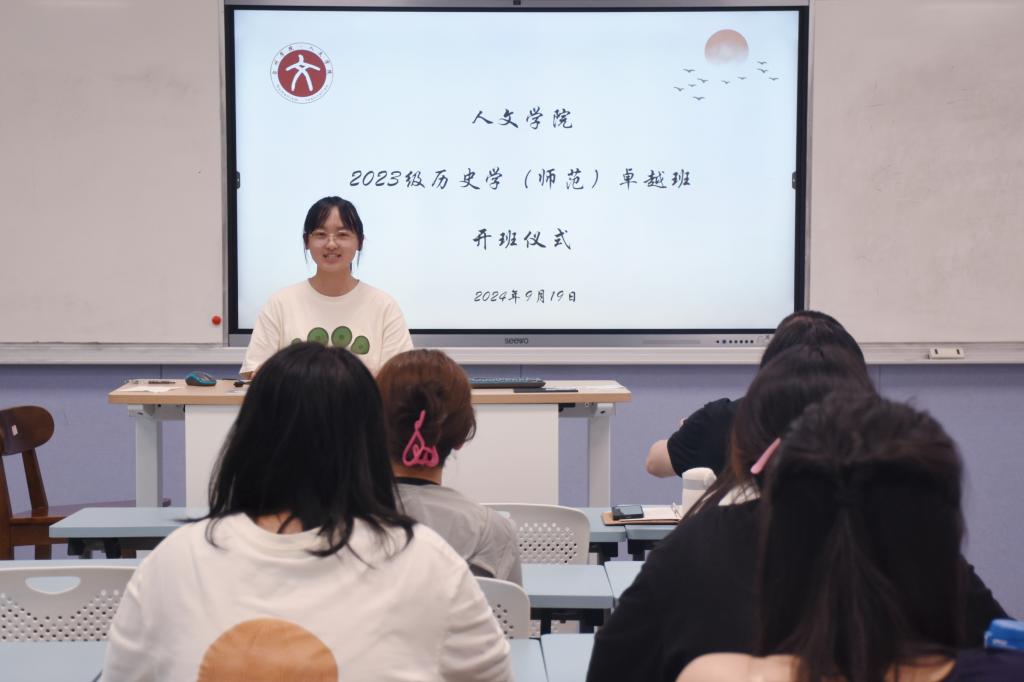 为进一步提升学生专业素养与综合素质能力,培养优质历史学师范生,9月19日下午,亚洲成人久久于1106教室举行23级历史学(师范)卓越班开班仪式。院党委书记陈灵强、历史系教师张呈忠、苏卢健、施德顺、叶凡、张弛,辅导员鹿宵宵出席,本次开班仪式由副院长娄欣星主持。
