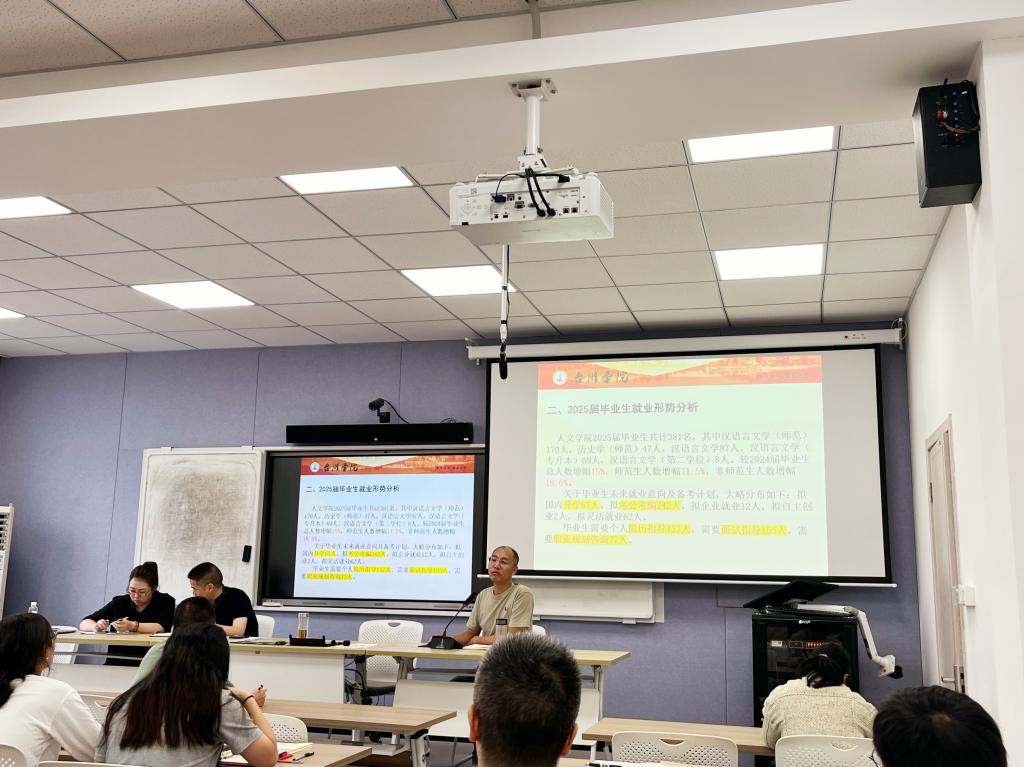 林军辉结合近几年毕业生就业数据,汇报了2025届毕业生基本情况,详细分析了当前就业形势、学院就业工作面临的挑战和具体应对措施。针对学情,林军辉通报了近期发生的几起学生事件,就心理关注学生、家庭经济困难学生等特殊群体进行了分析讨论,并部署了下阶段工作安排和工作要点。