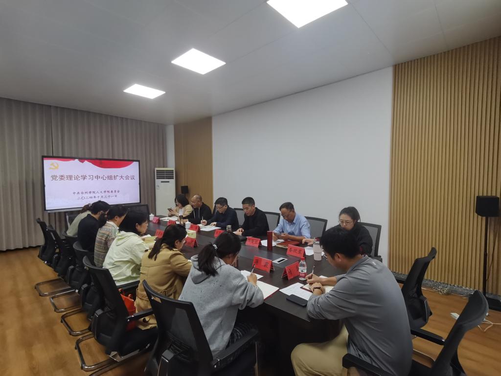 10月31日下午,人文学院党委开理论学习中心组举行扩大会,校宣传部副部长冯荣到会指导。党委书记陈灵强主持会议。院领导班子成员、党委委员、支部书记参加会议。