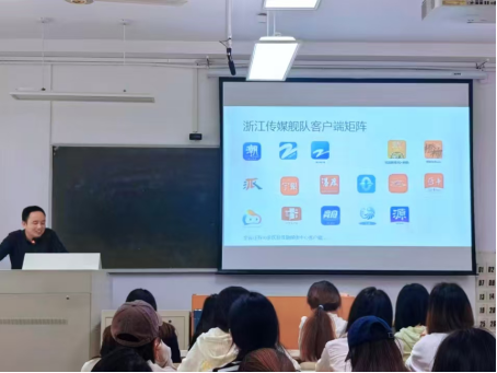 以理论为基石,洞察发展态势。11月12日上午,台州市新闻传媒中心新媒体数字编辑部主任黄元杰于1307教室带来《从“望潮”看新闻客户端发展趋势》讲座。黄元杰首先从媒体发展的两大方向入手,指出全媒体系统改革的迫切性。他强调,以新闻客户端为代表的全媒体时代的生产体系、传播体系走向何方是值得所有媒体人深度思考的问题。其次,他以望潮客户端为切入点,全面梳理新闻客户端的缘起,点明浙江传媒舰队客户端矩阵的布局初心,从而引发对新闻客户端所面临挑战的深度思考。黄元杰指出新闻客户端需要不断创新和改进,提升内容质量和服务水平,以满足用户的需求和期望,而不断创新和改进不仅是新闻客户端的态度,也是本次实训强调的专业态度与素养。