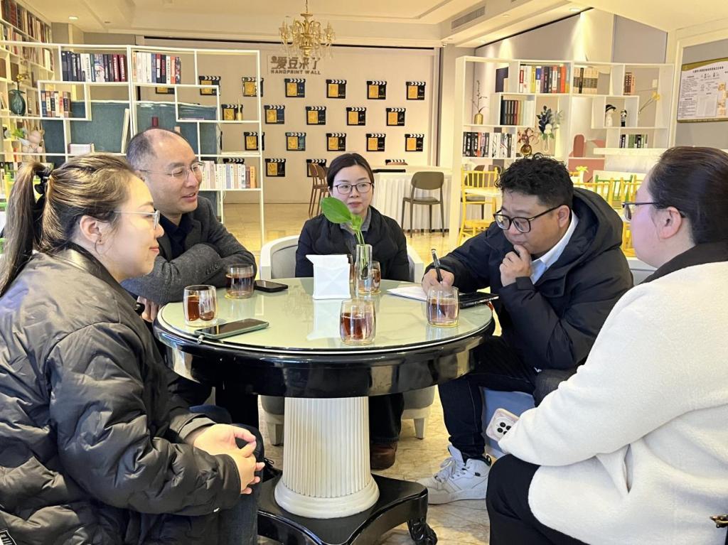 在交流过程中,横店影视公司周经理详细介绍了公司相关领域的情况。林军辉和娄欣星则重点介绍了学院网络与新媒体、汉语言文学等专业的学科建设情况和人才培养方案,以及网络与新媒体专业在数字内容生产、智能传播研究方向的特色课程体系。