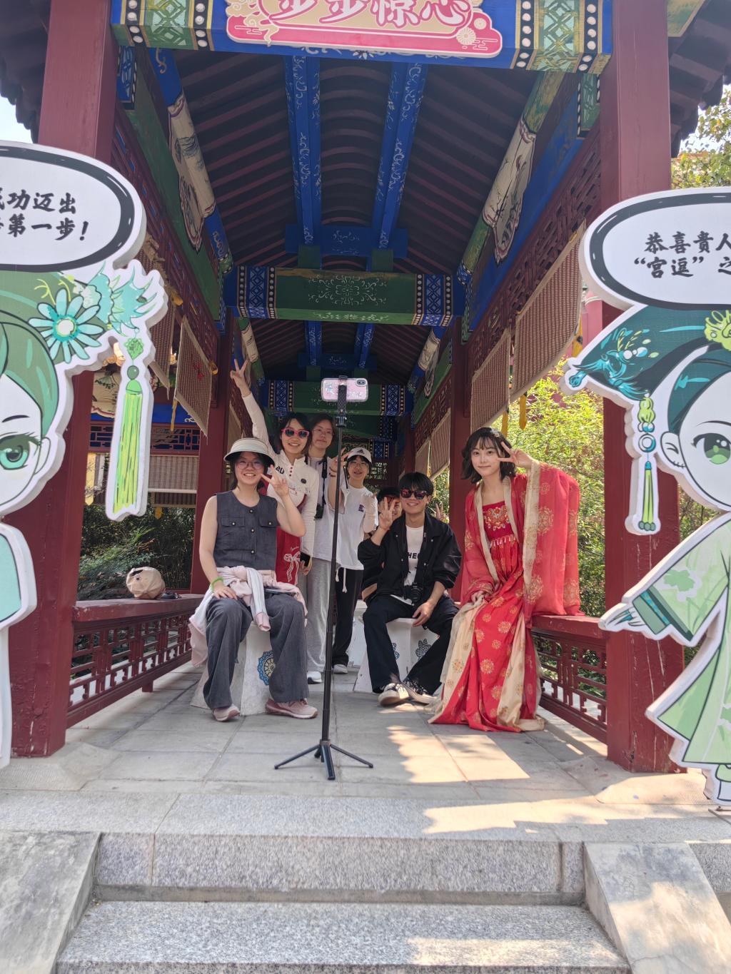 研学实践亦贯穿趣味与互动。在台州市新闻传媒中心记者的镜头下,学生身着戏服体验古装剧的拍摄流程,用餐间隙探讨剧本逻辑的专注神情,围坐复盘素材时的热烈讨论场景,观看影视城沉浸式演出时发出的热情欢呼声,均成为本次研学的生动注脚。全体22级网新学生用汗水和欢笑在横店留下了浓墨重彩的一笔。