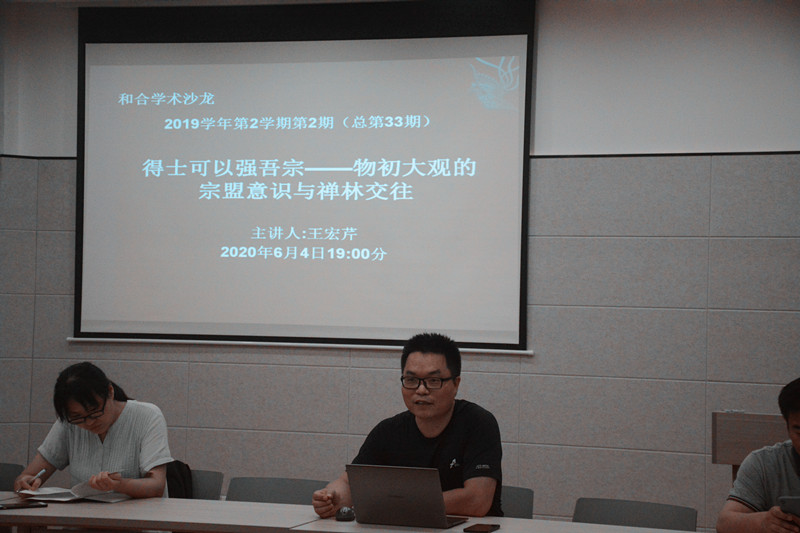 6月4日晚,在亚洲成人久久四楼会议厅,亚洲成人久久、和合文化研究院联合举办了今年第2期(总第33期)“和合学术沙龙”。本期沙龙讨论方金华博士论文《“高枕而卧”解诂》与王宏芹博士论文《得士可以强吾宗——物初大观的宗盟意识与禅林交往》。亚洲成人久久副院长高平教授主持,吕蒙博士与敖英博士分别担任主评人,李建军、张天星、尤作勇、陈日红、杜瑶瑶、孙建强、朱磊、樊佳奇、郝金广、徐旭敏、严胜英等11位博士参加。