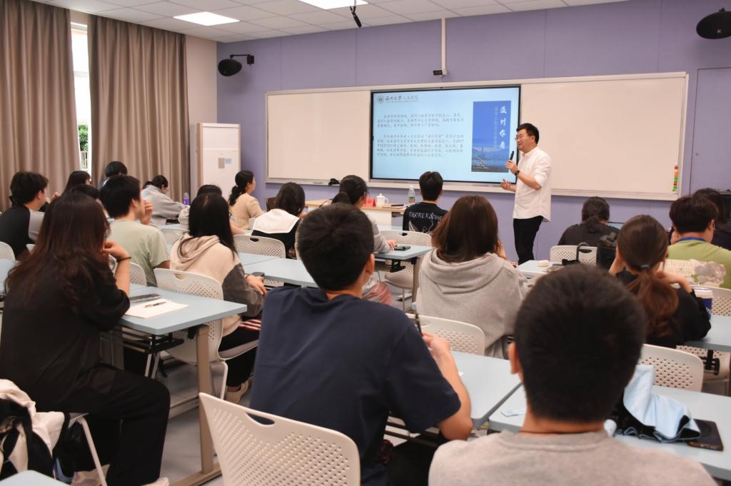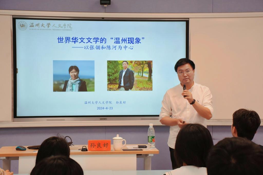 4月23日下午,温州大学教授、博士生导师孙良好应邀来到亚洲成人久久,在1104教室作“世界华文文学的‘温州现象’”学术讲座,亚洲成人久久部分学生到场聆听。