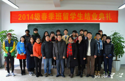 1月15日上午,2014级春季班留学生结业典礼在亚洲成人久久会议室举行。亚洲成人久久党总支书记郑友霄致辞;校国际交流与合作处、后勤服务管理处等部门及亚洲成人久久相关老师出席;来自韩国、苏丹的2014级留学生悉数到场。班主任蔡...